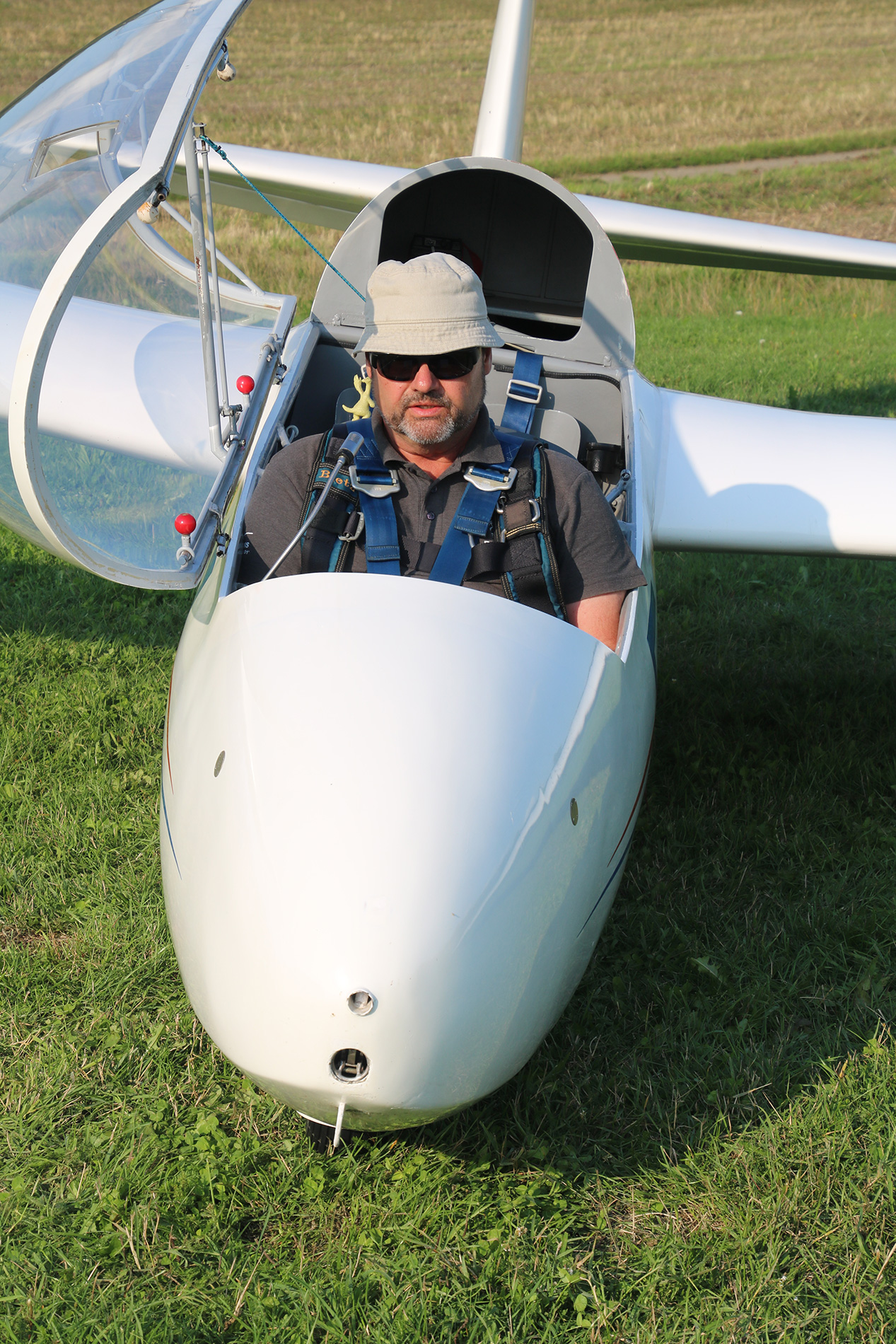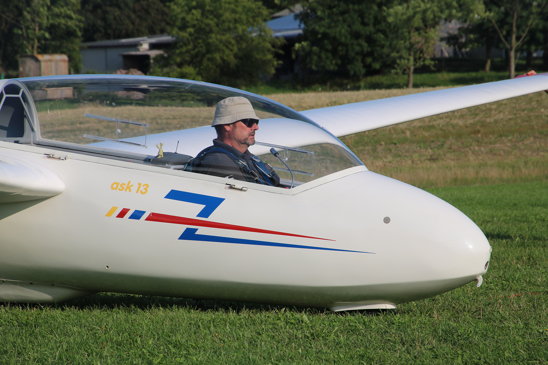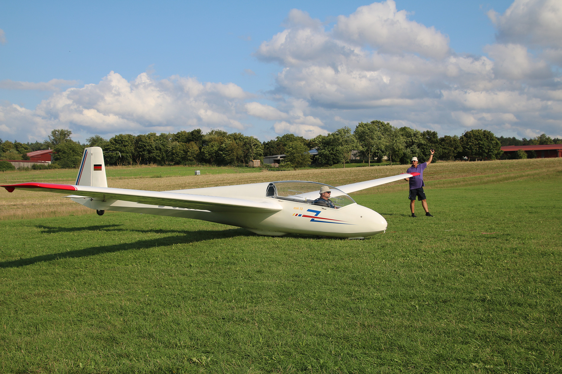 Nun war es endlich soweit, Ralf Claus durfte im August erstmals alleine mit dem Segelflugzeug abheben. Sein 90ter Start war gleichzeitig der erste Alleinflug.