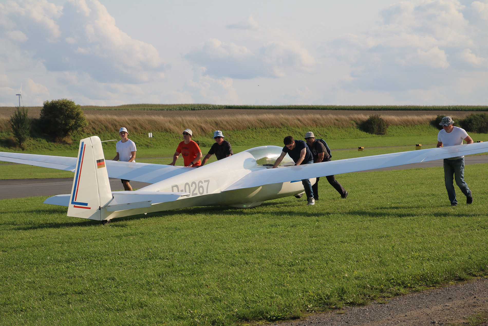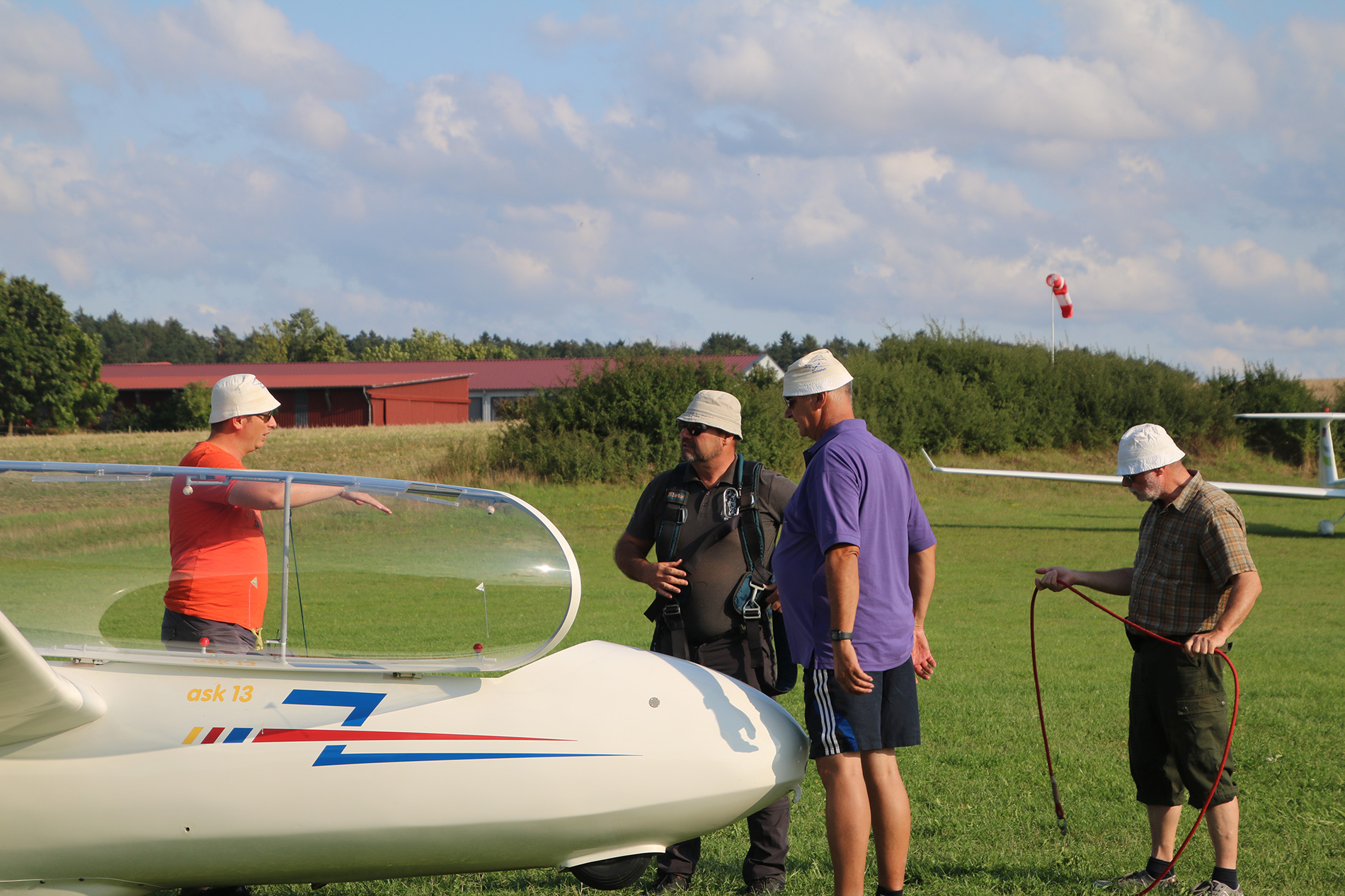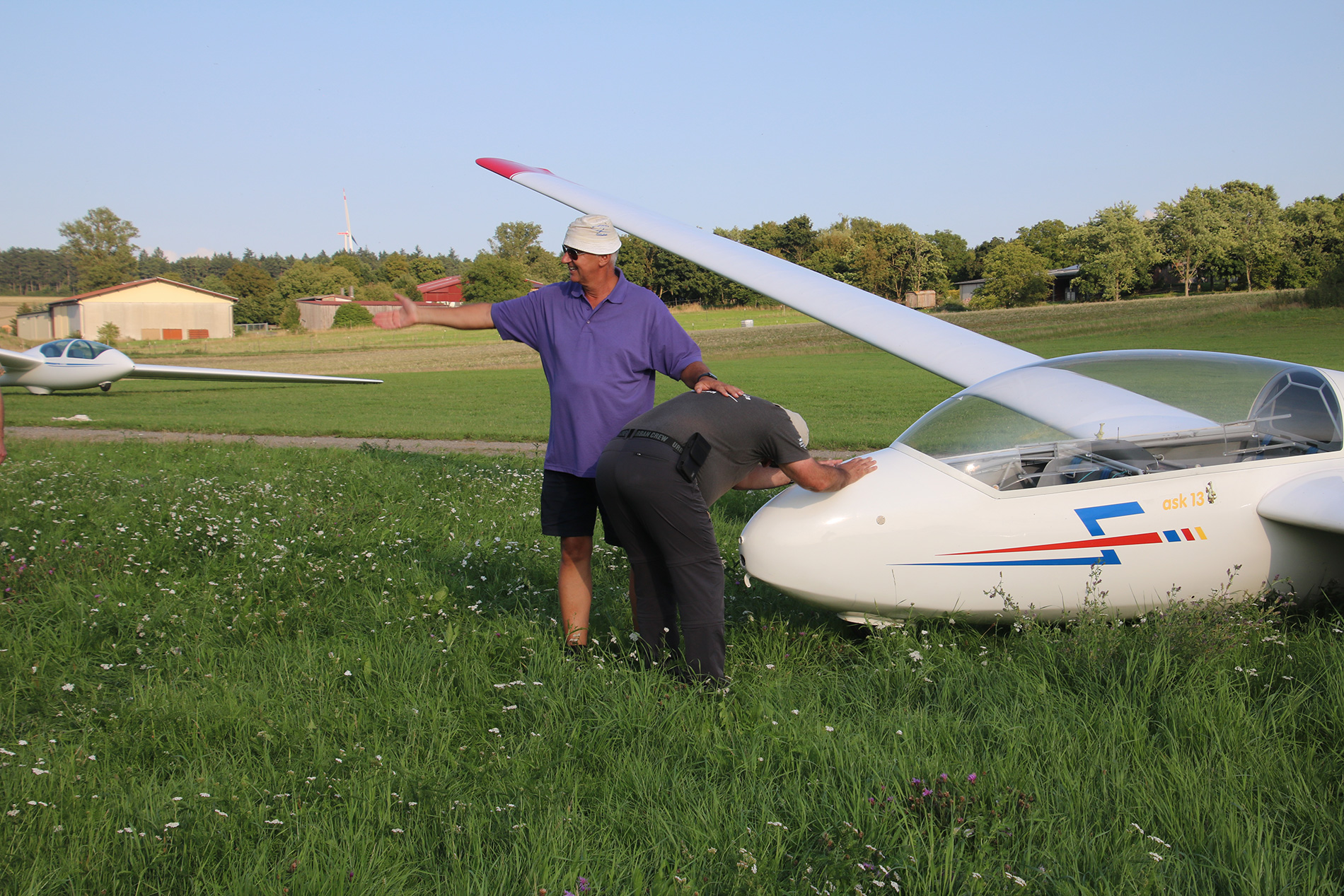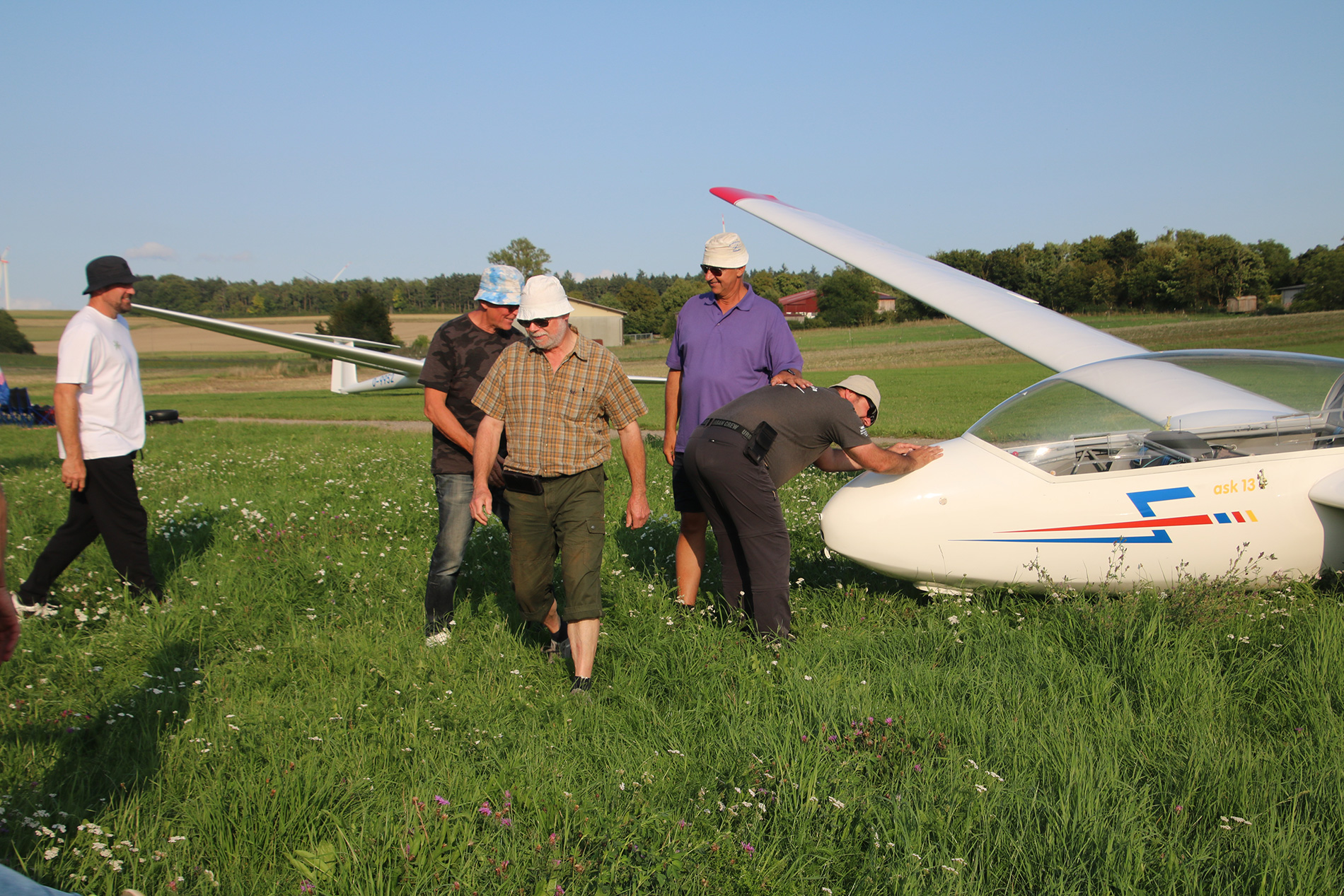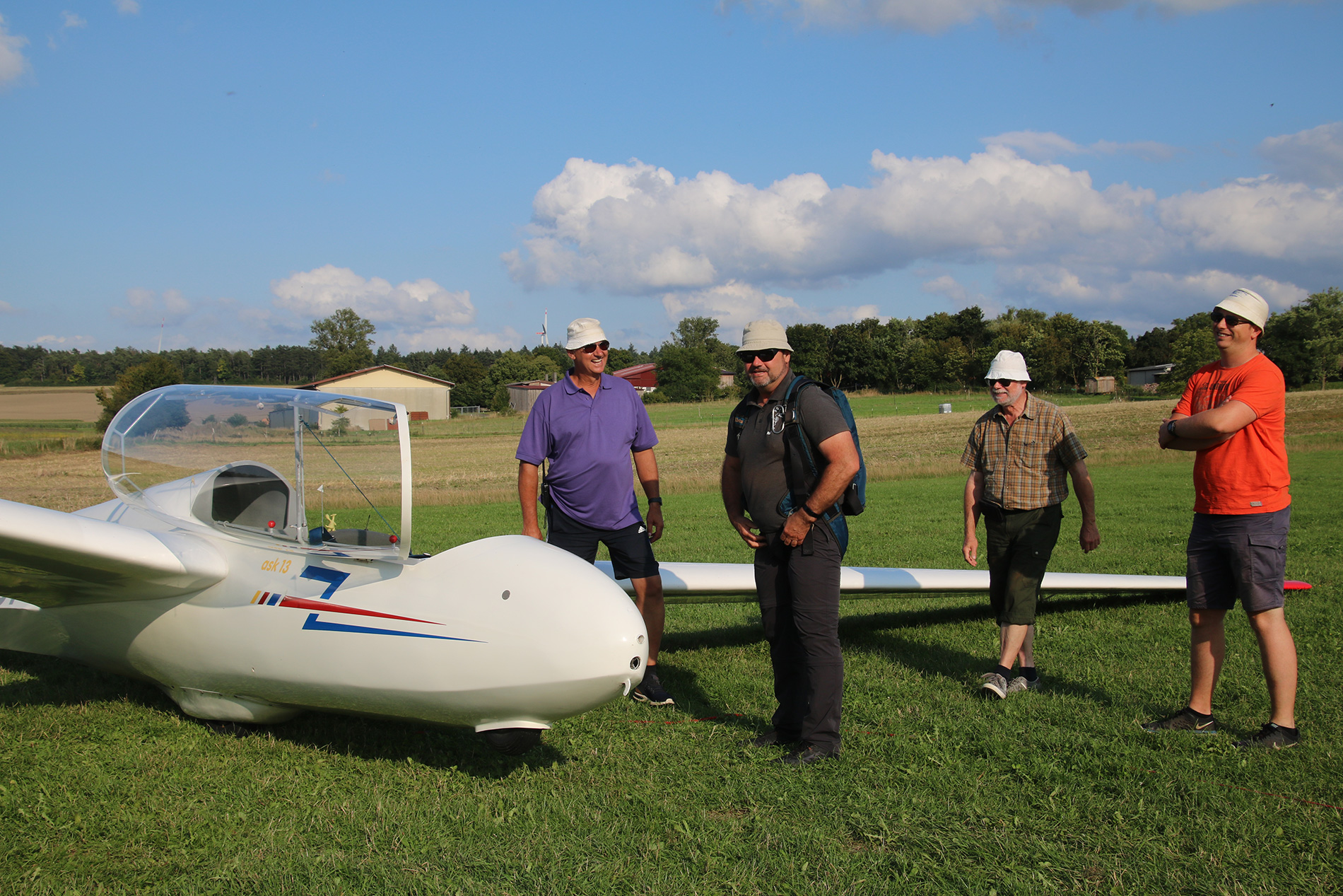 Umso glücklicher sind alle, dass Ralf nun im Fluglager diesen entscheidenden Ausbildungsschritt machen konnte. Bevor es soweit war, hat er mit den drei im Vereinslager anwesenen Fluglehrern einige Starts am neuen Platz gemacht. Die letzte Überprüfung folgte schließlich durch Philipp Graf-Tecklenburg und Herbert Wersching.